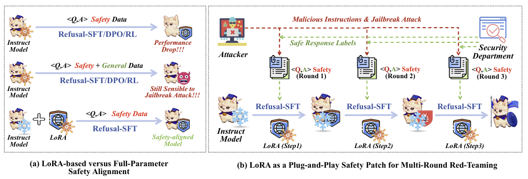 Our goal is to incorporate safety-related data, reward signals, and training objectives into the post-training stage of LLMs to enhance safety without compromising general capabilities. We are particularly interested in safety alignment of large reasoning models, safety-oriented reward models, and the automated synthesis and data augmentation of safety fine-tuning data. In the future, we also plan to explore multimodal safety alignment.